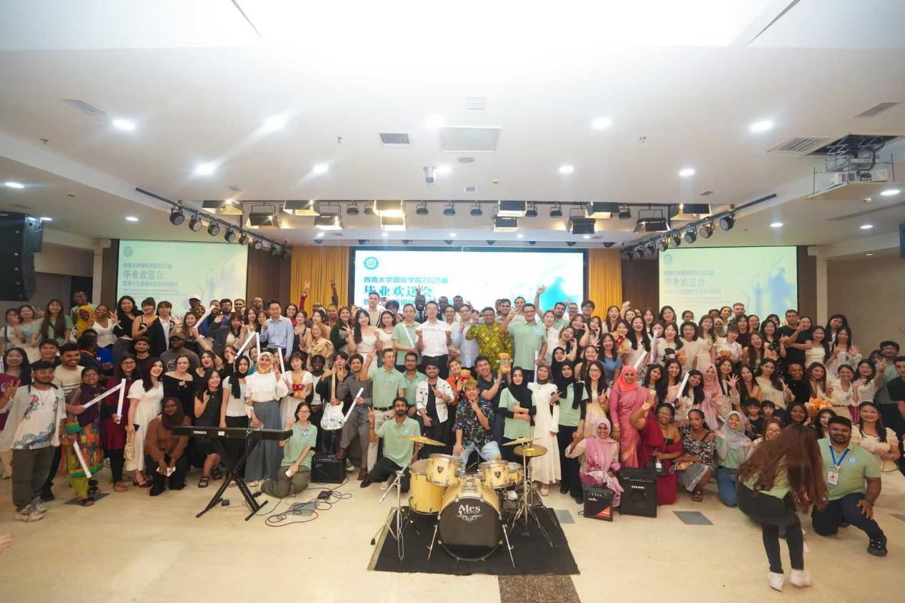 2025年6月20日18:30,西南大学365上市公司(英国)集团2025届毕业欢送会暨第十七届国际文化节闭幕式盛大启幕。学院党委书记张袁松、院长于泽元、党委副书记耿军、副院长胡琳、教师代表陈晨以及全体中外毕业生出席晚会,晚会由中国汉硕生周启贤、卢旺达籍留学生江丰主持。