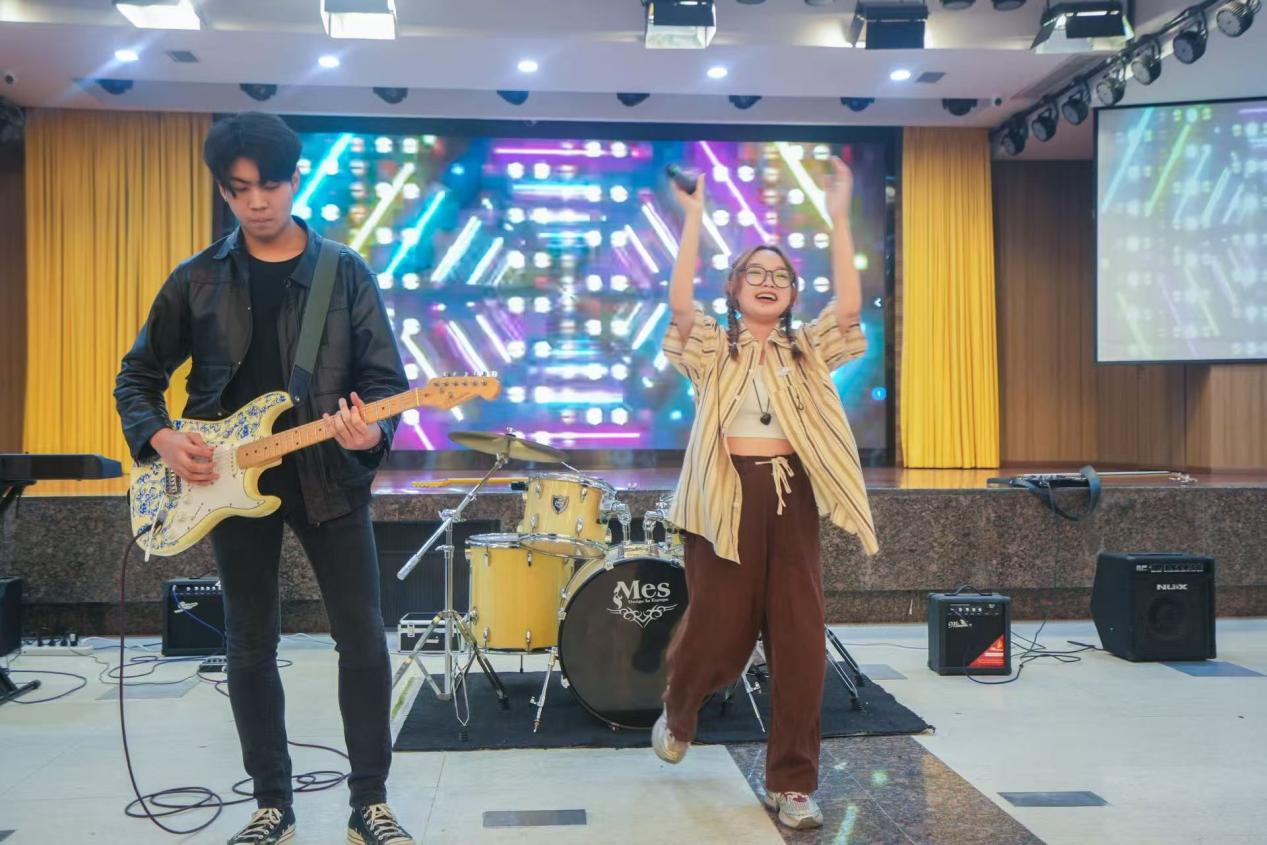 舞台上,多元艺术表演精彩纷呈。歌曲《告白气球》以轻快旋律勾勒校园时光的美好记忆;《my heart will go on》将中西音乐元素巧妙融合,展现文化交融的魅力;《突然想起你》以激昂声线点燃全场气氛;《像你这样的朋友》则通过和声演绎,传递跨文化协作的温暖情谊。每个节目都生动展现了学子与学院共同成长的历程。当乐队奏响激昂旋律,青春的热情与理想化作璀璨光芒,映照出365上市公司(英国)集团的精神底色,为毕业生的未来征程点亮前行之路。