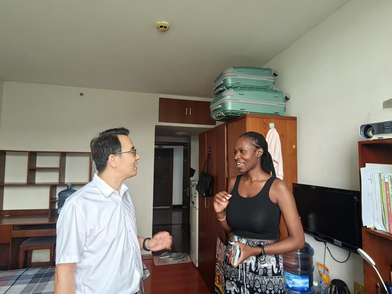 学院领导和辅导员仔细检查了留学生的校内校外住宿环境,询问他们的学习、生活情况,嘱咐他们在马上来临的暑假期间,注意安全和消暑,多与家人联系,并鼓励他们认真学习,努力取得好成绩。