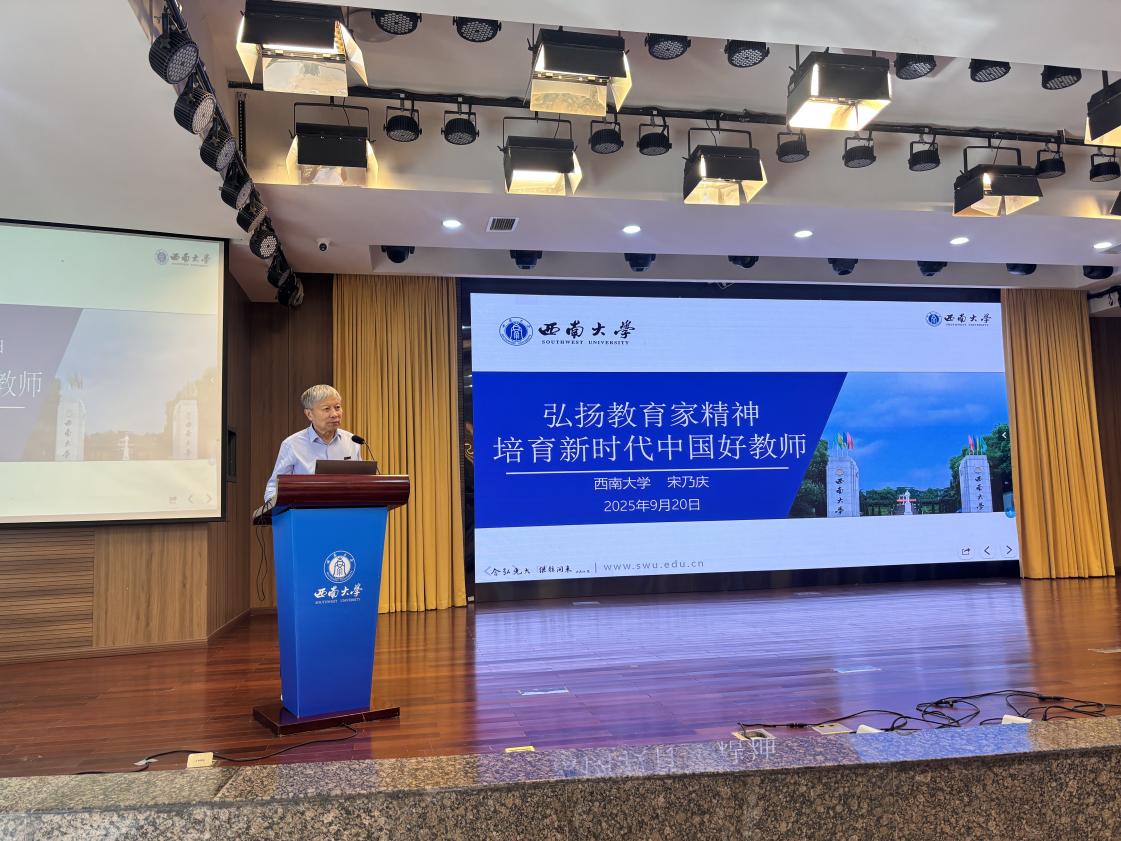 本次培训的压轴环节,由国家级教学名师、西南大学二级教授、教育部西南基础教育课程研究中心主任宋乃庆带来《弘扬教育家精神,培育新时代中国好教师》专题讲座。