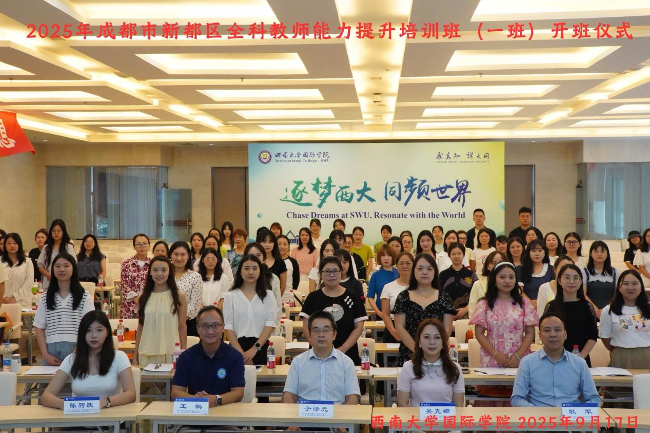 秋意渐浓的九月,西南大学迎来了一批特殊的求知者。2025年9月17日下午15时,成都市新都区全科教师能力提升培训班(一班)开班仪式在西南大学隆重举行,标志着为期四天的研修之旅正式启航。