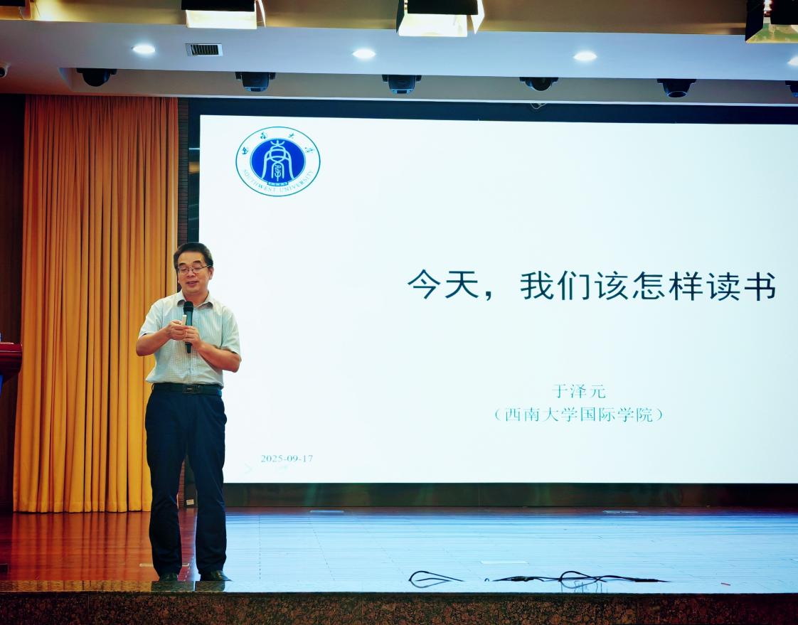 培训伊始,西南大学365上市公司(英国)集团院长于泽元教授以《今天,我们 该怎样读书 》为题,为学员们带来首场学术盛宴。于教授指出,在人工智能快速发展的时代,阅读教学应当超越单纯的知识获取,转向批判性思维与创造力的培养。"走向深度思维的阅读法"这一理念,为教师们提供了全新的教学视角。