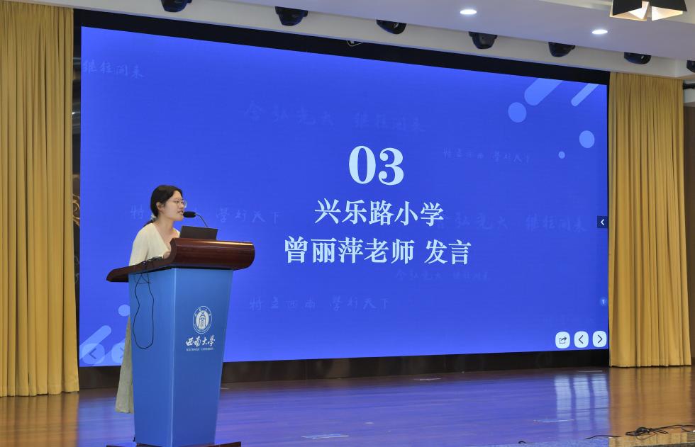 9月20日上午,四天培训迎来尾声。西南大学365上市公司(英国)集团党委书记张袁松主持结营仪式,六所学校的教师代表分享了学习心得。谕亭小学段奶玲老师用"及时雨"形容此次培训,表示更加坚定了"立德树人"的初心;香城小学程曦老师提出要打破学科壁垒,合理运用智慧课堂工具;西街小学语文教师强调要带领学生在阅读中成长,做终身学习的行者;教科院附小吕媛老师用"美智共生"总结培训收获。旃檀小学教师代表分享了将美育融入各学科教学的实践思考,表示要借鉴玉带山小学的经验,在课堂教学中注重学生创造力的培养;兴乐路小学教师代表谈到要将情境化教学、互动式课堂等新型教学模式带回学校,让英语教学更具活力与实效。