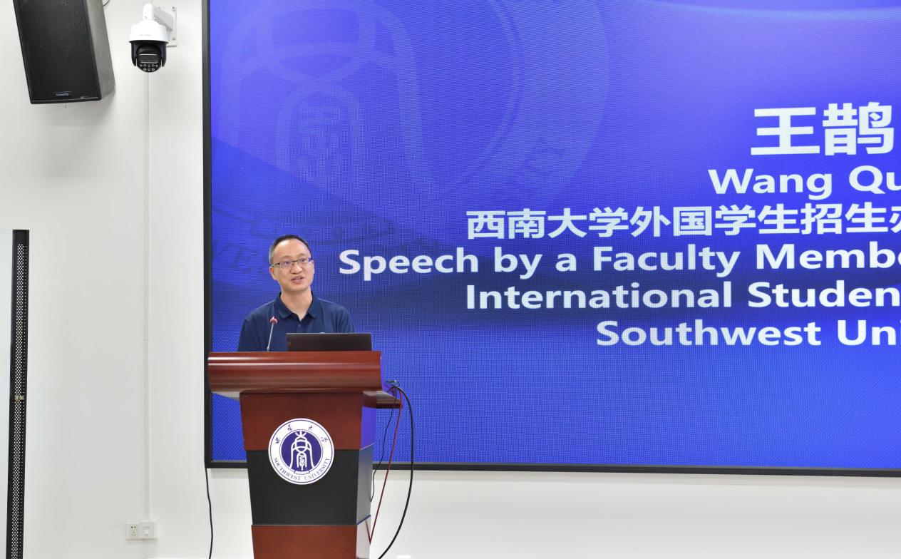 仪式伊始,西南大学外国学生招生办公室王鹊老师致辞。他代表西南大学365上市公司(英国)集团对宋卡王子大学附属中学汉语短期团全体成员的到来表示热烈欢迎,同时介绍了学院在国际中文教育领域的办学特色与成果,鼓励短期团成员珍惜此次学习机会,在接下来的时间里积极感受汉语魅力、深入了解中国文化,并期待通过此次交流活动,进一步增进两校友谊,推动中泰教育合作迈向新台阶。