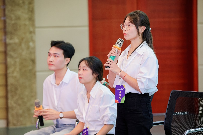 在活动中,任飘然同学以“袁隆平与杂交水稻——禾下乘凉梦与全球无饥梦”为主题,从学情分析、教学理念、教学目标、教学过程、教学亮点、教学评价等方面出发,进行了精彩的说课展示;王婉清同学在团队成员的配合下,选取“实操融合”和“数智赋能”两个教学亮点进行了10分钟的现场教学展示。团队成员在比赛中沉着稳重、自信大方,充分展示了新时代青年在国际中文教学技能方面的专业能力和创新精神。