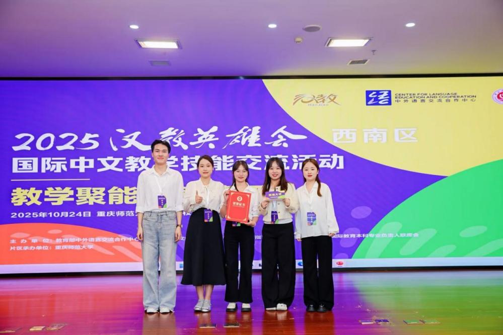 10月24日,由教育部中外语言交流合作中心、全国国际中文教育专业学位研究生教育指导委员会、全国高校汉语国际教育本科专业负责人联席会秘书处联合主办的2025“汉教英雄会”西南片区国际中文教学技能交流活动在重庆师范大学圆满举行。本次活动以“教学聚能,智慧领航”为主题,吸引了来自西南地区13所高校的15支师生团队同台展示。