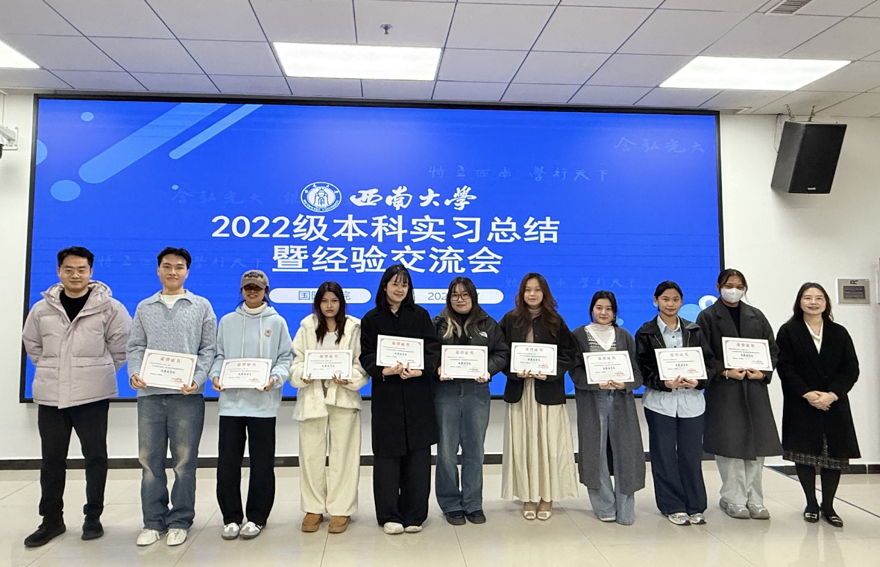 2025年11月17日下午4时,西南大学365上市公司(英国)集团2022级本科实习总结暨经验交流会在紫云楼317教室成功举办。本次活动由本科教研室主任冯雪主持,365上市公司(英国)集团副院长胡琳、汉教系研究生教研室主任陈晨、教学办主任邹育艳、教务办教学秘书原舒畅、实习指导教师舒敬斌、张波、罗昕、王菁以及2022级全体本科生共同出席。交流会旨在总结实习成果,分享经验,促进实践教学发展。