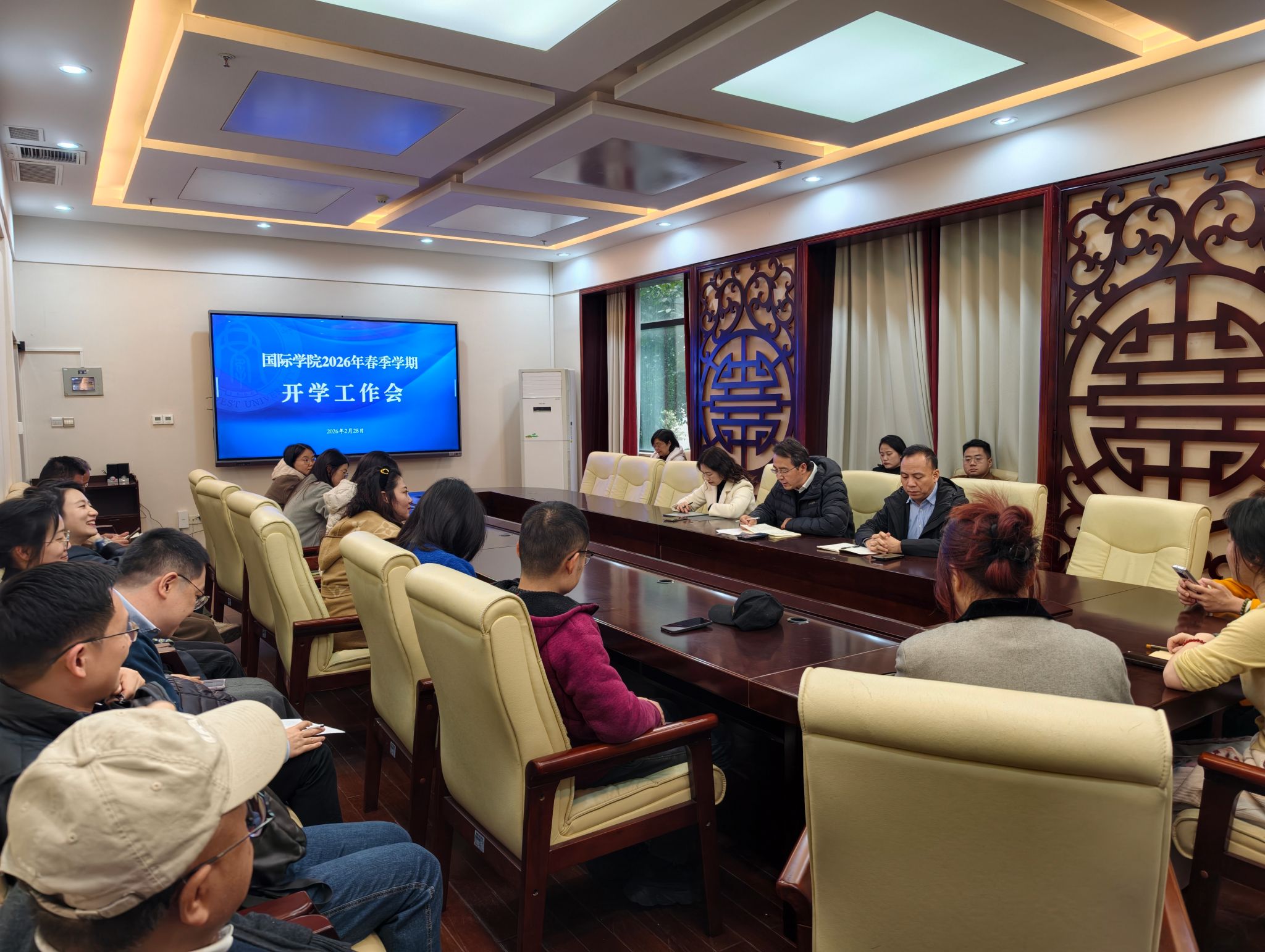 张袁松书记传达学校春季学期开学干部大会精神,并部署重点工作,强调“深化教育对外开放”的重要性。他指出,新学期要重点做好来华留学事业三方面工作:做大做强“留学西大”品牌、持续推进留学生管理趋同化、优化留学生教育培养方案。