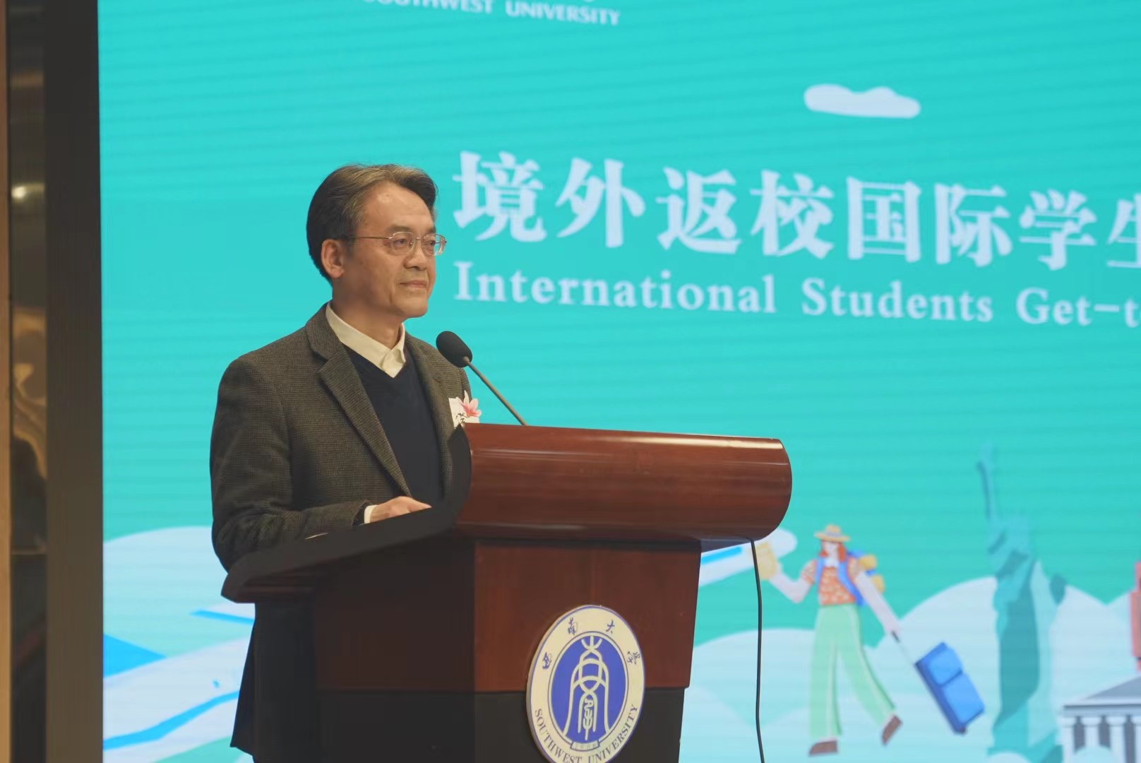 来自坦桑尼亚的阿普杜代表返校学生发言,表达回归西大生活的欣喜,畅谈对未来学习生活的美好愿景。