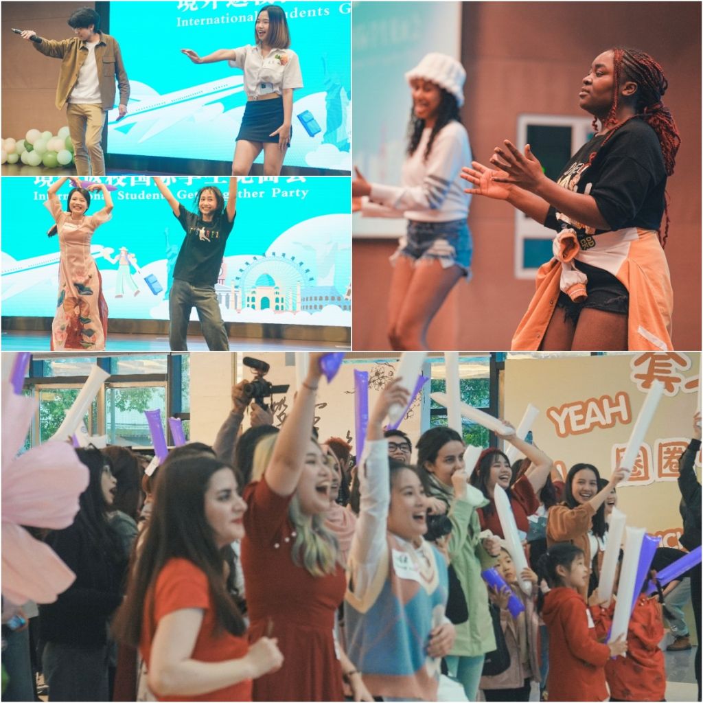 致辞环节结束后,游园活动拉开帷幕。大家热情高涨,积极投入“Party”,国际学生们不仅品尝精致茶点,畅玩投壶、套圈等中国传统游戏,还在现场设置的各大社团招新活动中结识友人、交流心得、寻找归属。与此同时,Diversity乐队、舞蹈队以及各国学生代表相继登台演出,掀起了现场气氛的阵阵热潮,大家纷纷挥舞着应援棒左右摇摆,欢呼雀跃、掌声雷动。此刻灯火璀璨,室内通明,来自五湖四海、讲着不同语言的国际学生们,手牵手、心连心,在音乐和欢呼声中打破了国家、文化的壁垒,流连沉醉在这春日归家的盛宴之中。