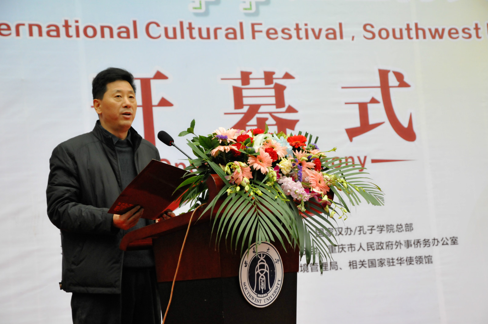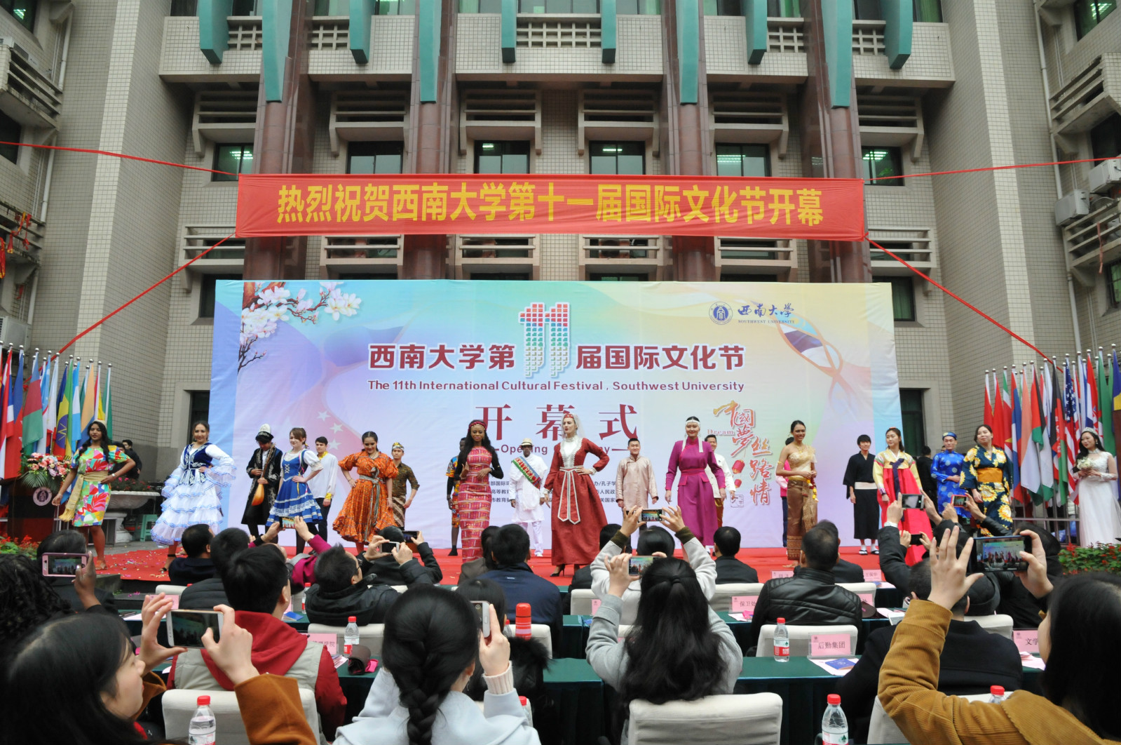 此次国际文化节以“中国梦 丝路情”为主题,积极响应习近平总书记所推动的“一带一路”战略,努力营造包容和谐的文化氛围。出席文化节开幕式的嘉宾有重庆市人民政府外事侨务办公室、重庆市公安局出入境管理局、北碚区公安分局、加拿大驻重庆总领事馆有关领导,副校长靳玉乐教授、学校相关职能部门及部分学院负责人。