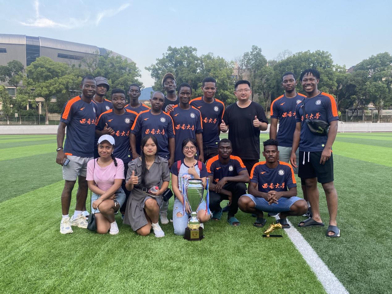 7月23日,北碚区足协“大窑汽水”11人制足球联赛在西南大学落下帷幕,代表学校出战的国际学生足球队技压群雄,以7胜2平进50球的不败战绩荣获本次联赛冠军。