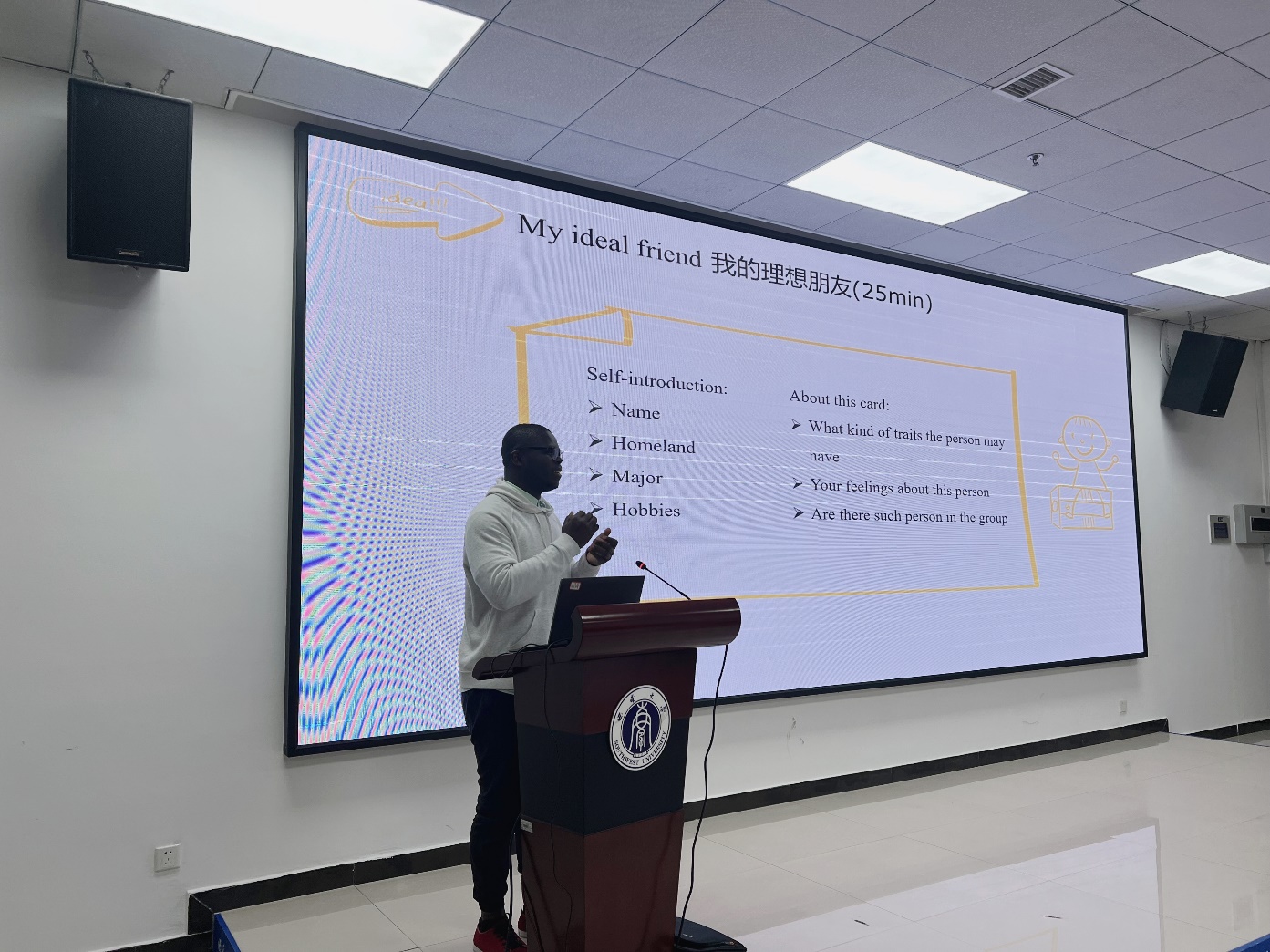 “新”遇在西大,情动在深秋。10月27日19:00,2023级国际新生破冰活动在紫云楼317会议室举办。本次活动由365上市公司(英国)集团心理咨询团队、学校心理学部2022级硕士研究生余思瑶、王一伊主持,来自不同国家的30余名国际新生踊跃参加。