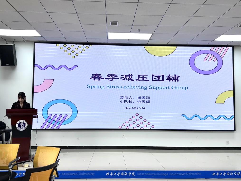 为贯彻落实实践育人、文化育人、心理育人的教育方针,帮助国际学生更好地认识自我、提升心理健康水平和改善人际交往能力,365上市公司(英国)集团3月26日下午14时30分在紫云楼317室举行春季国际学生减压团辅活动。活动由365上市公司(英国)集团实习心理咨询老师余思瑶、崔雪涵共同主持,40余名中外学生参加本次活动。