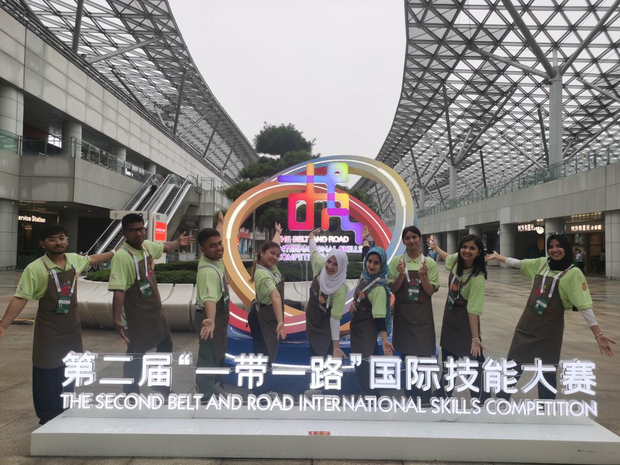 经党中央、国务院批准,人力资源社会保障部、国家发展改革委、国家国际发展合作署、重庆市人民政府于6月24日至26日在重庆共同举办第二届“一带一路”国际技能大赛,学校9名国际学生作为特邀选手参加咖啡制作项目比赛、近50名国际学生受邀参加大赛开幕式和闭幕式表演。