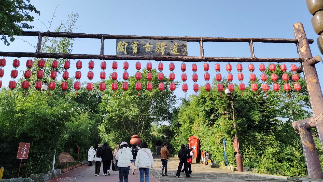 观精致陶器,深省廉文化。守望了1400年的成渝古道在中外学生们的脚下蜿蜒展开,如今已变为“陶宝古驿道”的古道上仍见道道车辙与马蹄印,古驿道上的陶廉文化长廊为中外学生们声如洪钟地解读荣昌陶的十二字美名——红如枣,思想正;声如磬,名声好;薄如纸,谨慎行;亮如镜,身心净。中外学生们感叹“一鹭青莲”的美景,领略“一路清廉”的真谛。