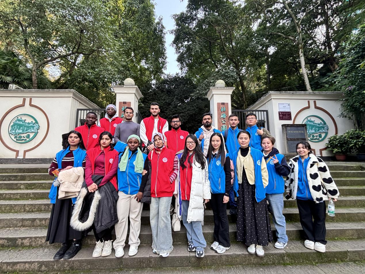 随后,大家步行至红楼与北碚公园,于探访乡建遗迹中,沉浸式感受历史建筑的文化韵味与生态保护的创新成果。在红楼,留学生们细细品味这座历史建筑背后的红色故事与时代记忆,体会到中国乡村建设在社会治理与精神文化塑造方面的深刻意义。步入北碚公园,独特的自然景观让大家感受到乡村生态保护的有效意义,在亲近自然中领会人与环境、原生态与现代建设和谐共生的美妙状态。此次探访,大家秉持文化体验的初心,最终以学习有收获、思想受洗礼收尾。