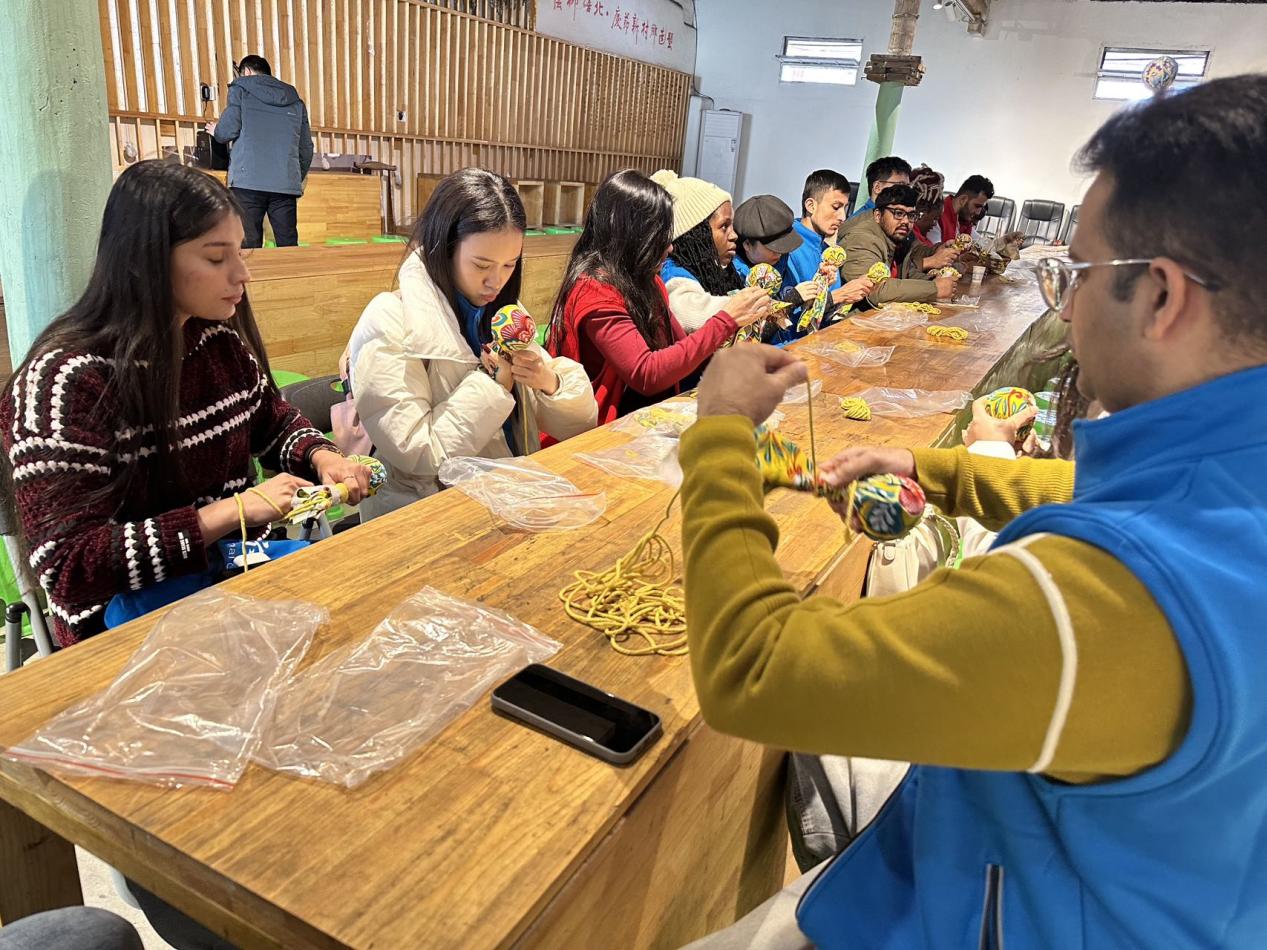 另一场乡村文化与产业融合的生动实践在柳荫开展。留学生们动手制作中医药锤,亲身感受中华传统技艺的魅力。药锤不仅承载着中医药文化的传承,也是当地乡村产业新时代发展的重要组成部分,以文化融合型产业带动经济,为村镇注入了新的活力。一次次动作、一锤一锤的打磨,留学生们在制作新锤中仿佛看到了当代产业更新换代的历史,见证乡村在创新与传承中焕发的新生机,切身感受中国乡村从传统迈向现代的坚实步伐。