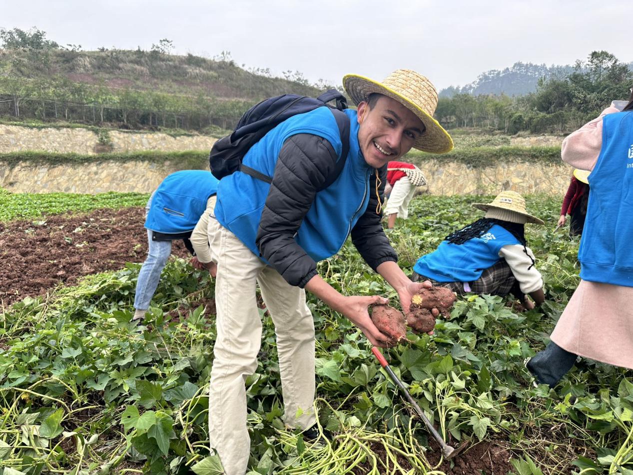 这场别样的“红薯行动”,是一次新奇的劳动体验,更是一堂生动的乡村振兴教育课。“中国的乡村都是这样吗?”“这里的环境怎么这样好?”“这里和我来中国前听说的乡村环境完全不一样!”手在田间劳作,口在诉说留学生们的心声,与村民的交流让大家更加深入地了解到中国乡村的变迁与发展,体会到中国乡村建设实践的创新与活力。