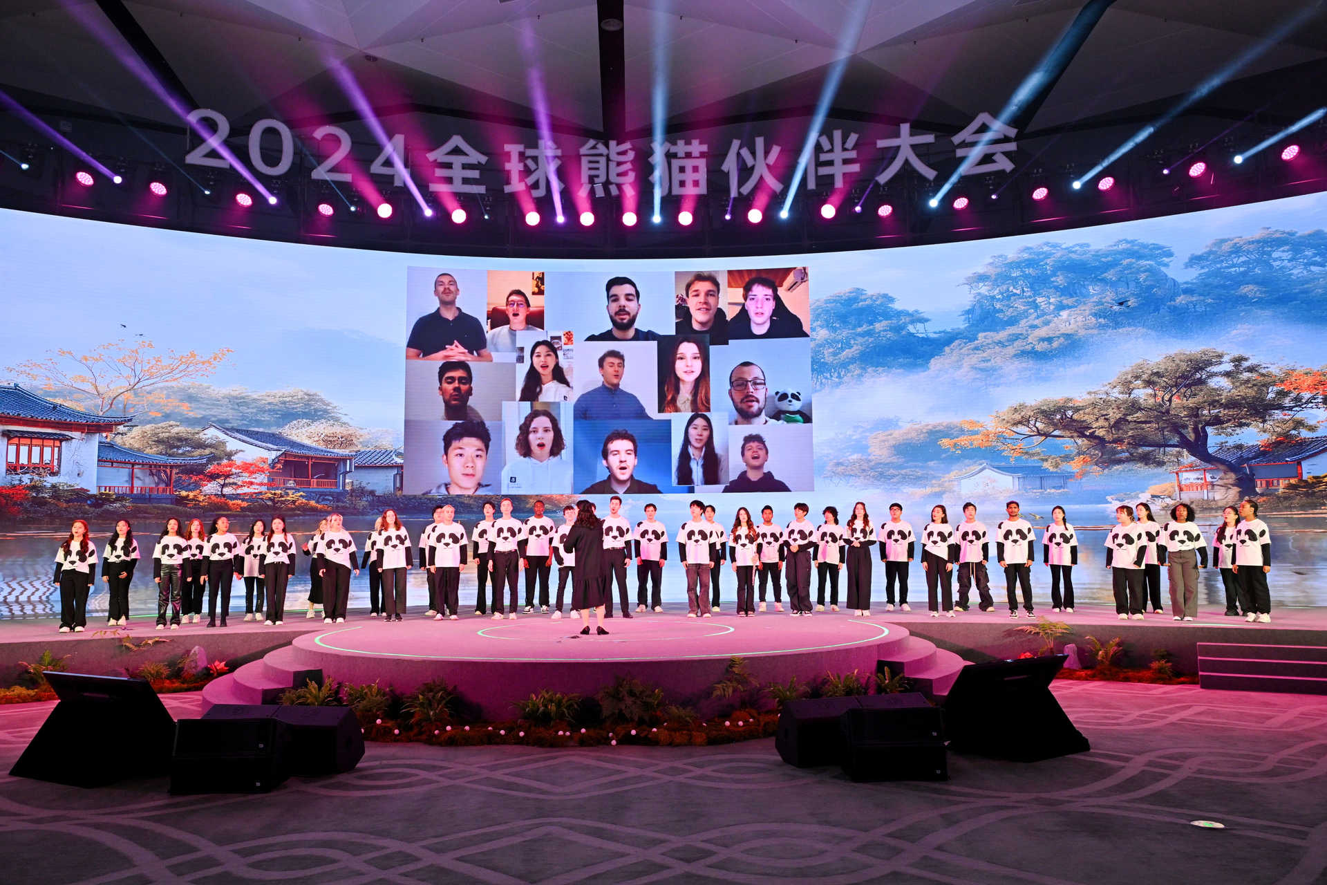 2024年11月26日,备受瞩目的全球熊猫伙伴大会在四川成都天府国际会议中心顺利启幕。本次大会以“人与自然和谐共生”为核心议题,旨在推动全球生态保护合作,加强大熊猫等珍稀物种的保护力度。来自世界各地的生态保护专家、学者及熊猫伙伴齐聚一堂,共同探讨绿色发展的新路径。学校10位留学生与来自世界各地的留学生携手,组成了37人国际合唱团,以音乐为媒介,传递生态保护的理念与呼声。