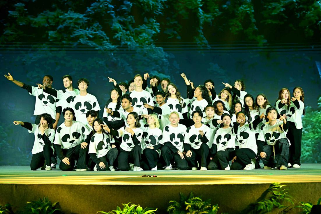 开幕式上,合唱团带来了经典中文歌曲《让我们荡起双桨》和原创歌曲《We are pandas》。通过歌声,留学生们表达了对绿色未来的向往与追求,呼吁全球青年共同关注大熊猫保护事业,为构建人与自然和谐共生的美好未来贡献力量。他们的歌声在会场内回荡,引发了与会者的强烈共鸣。