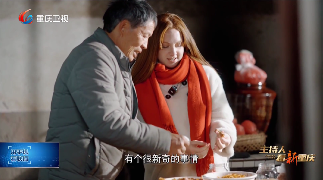 在合川,左拉同学踏上了一段寻找中国红萝卜的乡村之旅。她跟随活动主办方来到了青草坝,这里以特产的红萝卜和萝卜卷闻名。在青草坝萝卜卷手工艺传承人周克健老师的带领下,左拉深入了解了萝卜卷的制作过程。从挑选红萝卜、晾晒、腌制到捆扎,每一道工序都让她大开眼界。特别是当周老师用精湛的刀工切出如弹簧般的萝卜片时,左拉不禁赞叹道:“太好看,真的!”