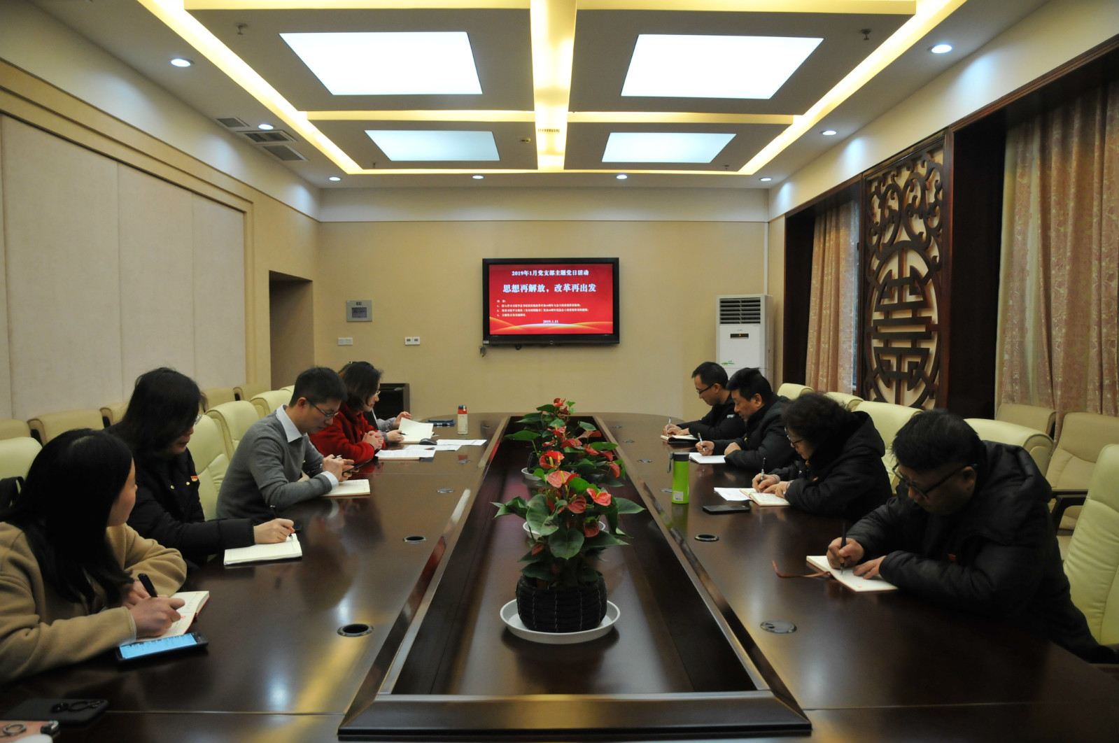 本次会议包括四个部分:1.学习习近平主席在庆祝改革开放40周年大会上重要讲话精神;2.观看习近平主席在《告台湾同胞书》发表40周年纪念大会上的重要讲话;3.各党员同志根据本次学习内容进行讨论发言;4.观看习近平总书记2019年新春贺词。