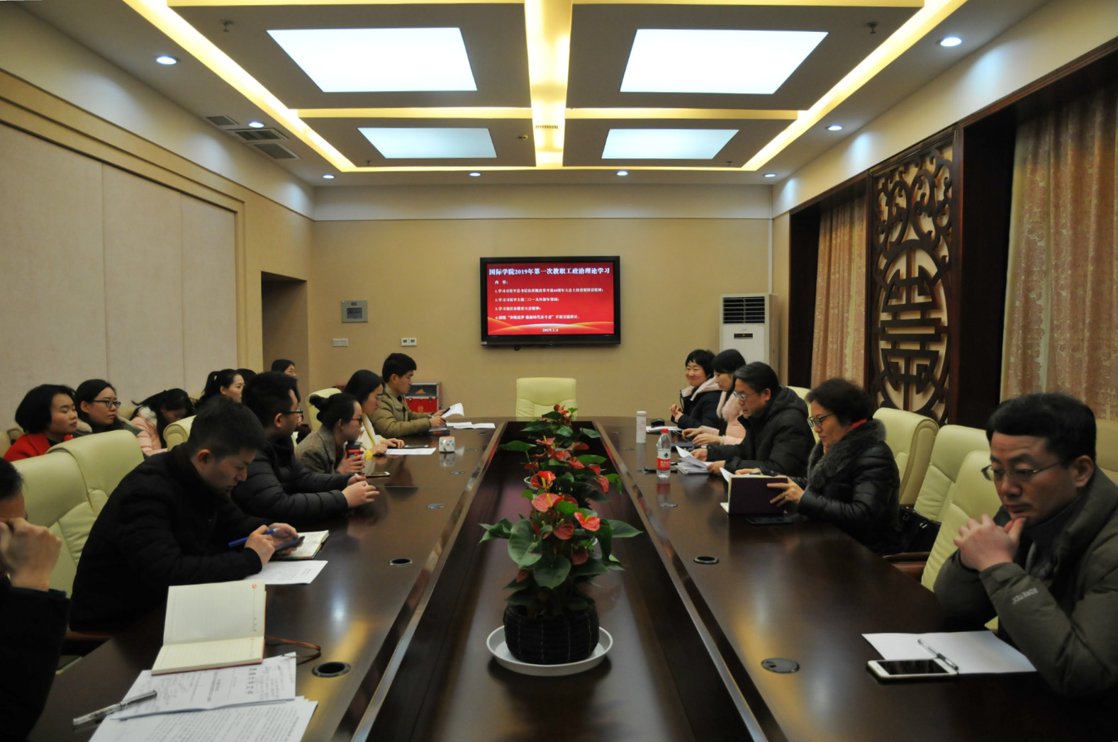2019年1月4日下午2:30,365上市公司(英国)集团全体教职工在紫云楼签约室开展本年度第一次政治理论学习活动。会议由刘猛书记主持。