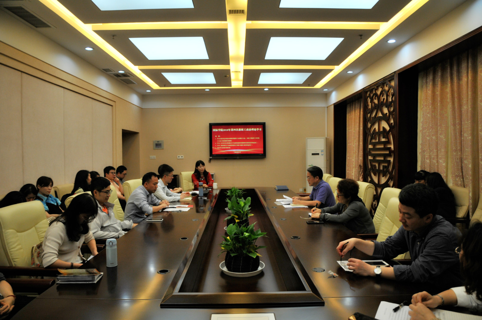2018年6月1日下午3:30,学院全体教职工在紫云楼签约室开展2018年第四次政治理论学习活动,会议由刘猛书记主持。