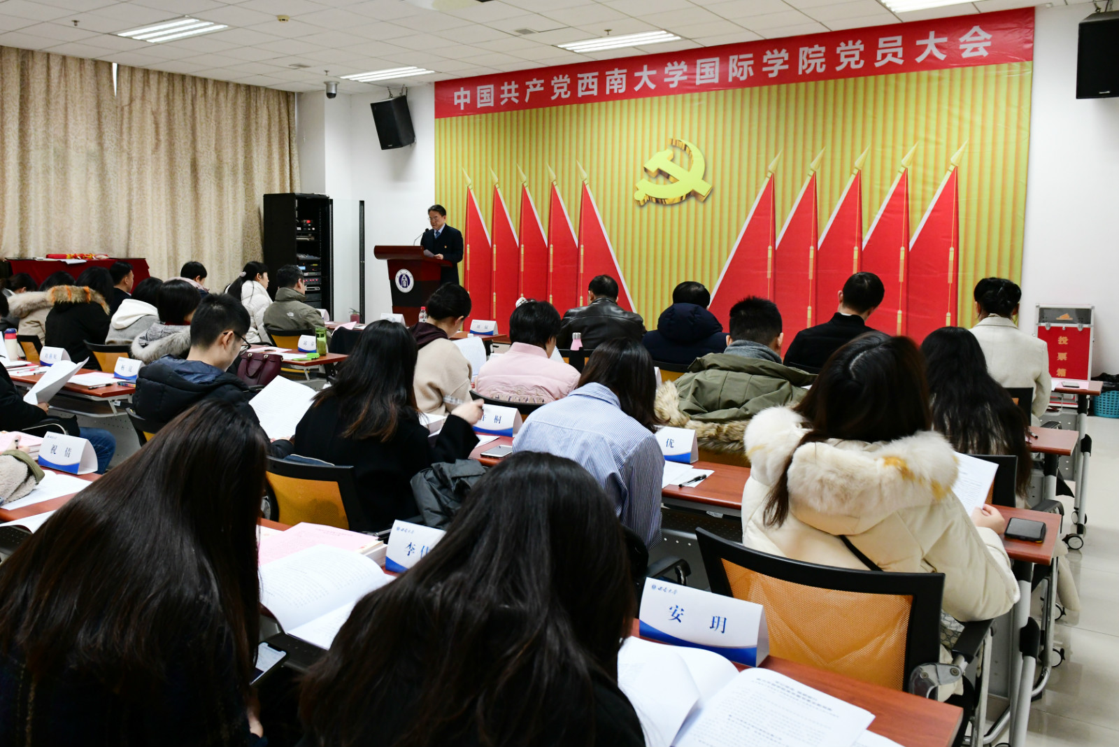 12月29日下午,中共西南大学365上市公司(英国)集团党员大会在紫云楼317室隆重召开,选举产生了学院新一届党总支委员会。党总支书记刘猛,院长、党总支副书记刘承宇,副院长李航等50名正式党员参加会议,民主党派代表张家政副院长、5名预备党员、13名入党积极分子列席会议。大会由刘承宇同志主持。