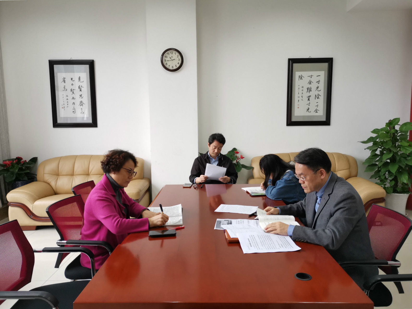 刘猛书记首先对学院开展主题教育工作进行了中期总结,他表示,学院要持续深入扎实推进主题教育,深入学习贯彻习近平总书记关于“不忘初心、牢记使命”主题教育的重要讲话和重要指示批示精神,牢牢把握根本任务、总要求、具体目标和重点措施。随后,刘猛书记对两个文件进行领学,接着学院领导班子成员依次对文件进行领学,并结合工作实际对所学理论观点交流讨论,分享心得。最后,刘猛书记对学习研讨会进行点评总结,并就近期的调查研究工作进行了安排布置。