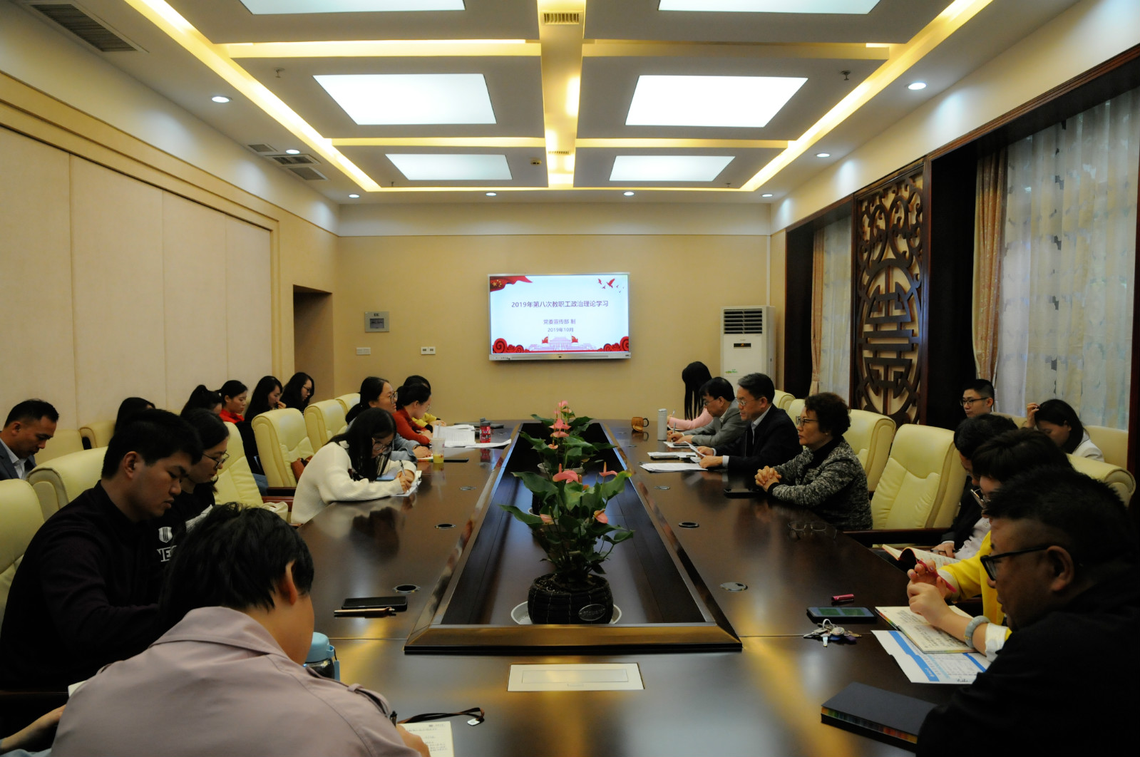 20191011日下午2:30,365上市公司(英国)集团全体教职工在紫云楼签约室开展本年度第次政治理论学习活动。会议由刘猛书记主持。