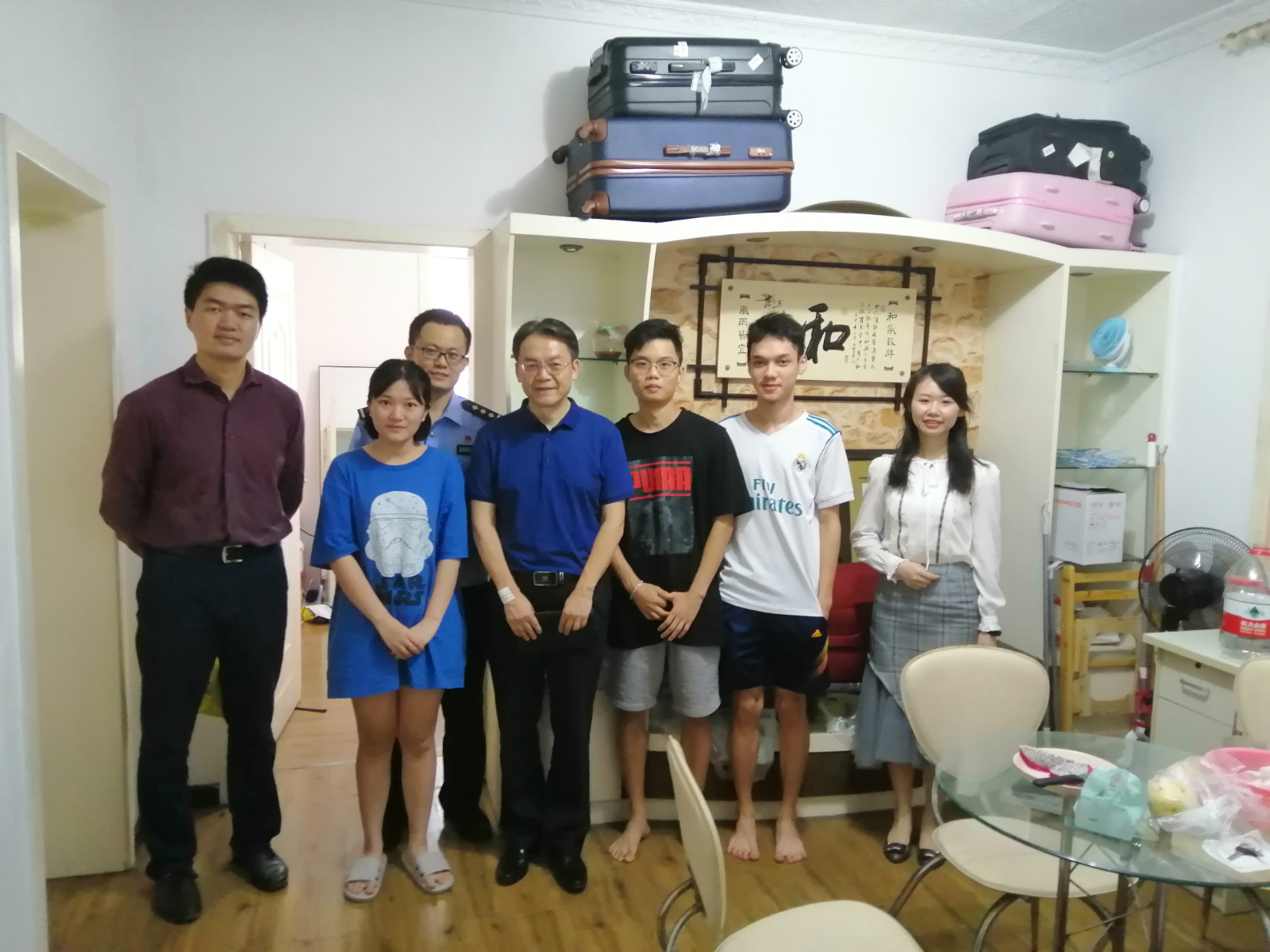 为迎接国庆节的来临,学院领导格外重视校外住宿的国际学生新生。9月26日下午,王静院长、刘猛书记、李航副院长、张家政副院长以及学工办、招生办、院办还有汉教系的相关老师带领留学生会干部会同辖区民警一起看望并慰问了在校外住宿的国际学生。