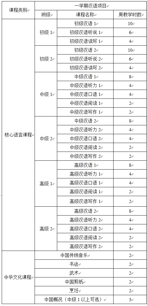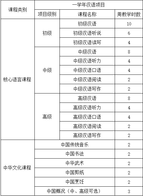 初级汉语(1):培养学生初步的听、说和写的能力,以满足基本的日常生活、学习交流需要,掌握600个左右汉字和部分基本的汉语语法规则