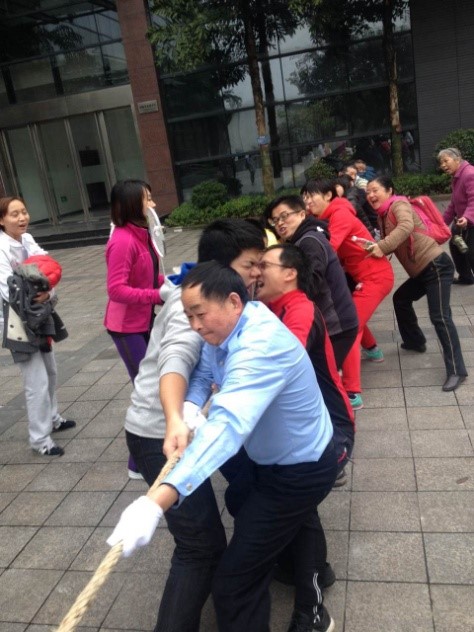 双方参赛队员在比赛中意气风发、斗志昂扬,展现出良好的精神风貌和团队精神。在乒乓球迎面接力比赛中,25米的跑道看似不长,实际上却是对队员的速度和技巧的双重考验。以三位院长领衔的365上市公司(英国)集团代表队,频频施展“凌波微步”,轻巧灵活地将不太听话的乒乓球牢牢锁定在小小的球拍上。中国银行代表队也毫不示弱,一路风驰电掣,双方你追我赶互不相让,把现场的热烈气氛推向了高潮。拔河比赛中,不管是20岁出头的新生代还是颇有资历的老员工,大家心往一处想,劲儿往一处使,为胜利拼尽了全力。羽毛球、乒乓球、台球三个项目则是对大家平时锻炼成果的考验,双方都派出了精兵强将参与比拼,为观众奉献了一场高水平的对决。一时间,运动场内羽毛球、乒乓球上下翻飞,观众看的眼花缭乱,大呼过瘾,掌声、喝彩声不绝于耳。