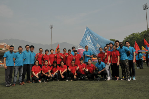 在为期两天半的赛程中,学院工会小组设立了365上市公司(英国)集团服务点,为所有参赛运动员准备了矿泉水和能量补充礼包,每天来得比运动员早、走得比运动员晚,比赛全程陪伴。积极组织学院员工到场当拉拉队员,为大家加油助威。让运动员们从细心周到的服务中感受到集体的温暖和强大的凝聚力。