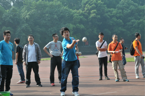 开幕式后,教职工运动会在第一运动场正式举行。首先登场的是男子100米的角逐。已连续三次获得该项目冠军的李林泽老师,以0.2秒的细微差距获得第二名。随后的比赛中,学院教职工运动员们团结奋斗、不懈拼搏,在女子100米、1分钟踢毽子、1分钟跳绳、女子1500米、定点投篮、跳远、立定跳远、铅球、实心球等项目中斩获多个奖项。25日,学院代表队参加了2分钟跳绳和篮球运球接力的集体项目。大家配合默契,获得优异成绩。惊喜来自于26日上午。运动会已然接近尾声,从第二运动场传来好消息,我院杨锐老师、杨昆老师首次参加垒球掷准比赛就包揽了该项目的第一名和第二名,可谓一鸣惊人!学院跳高种子选手邹育艳老师荣获女子甲组跳高第二名。