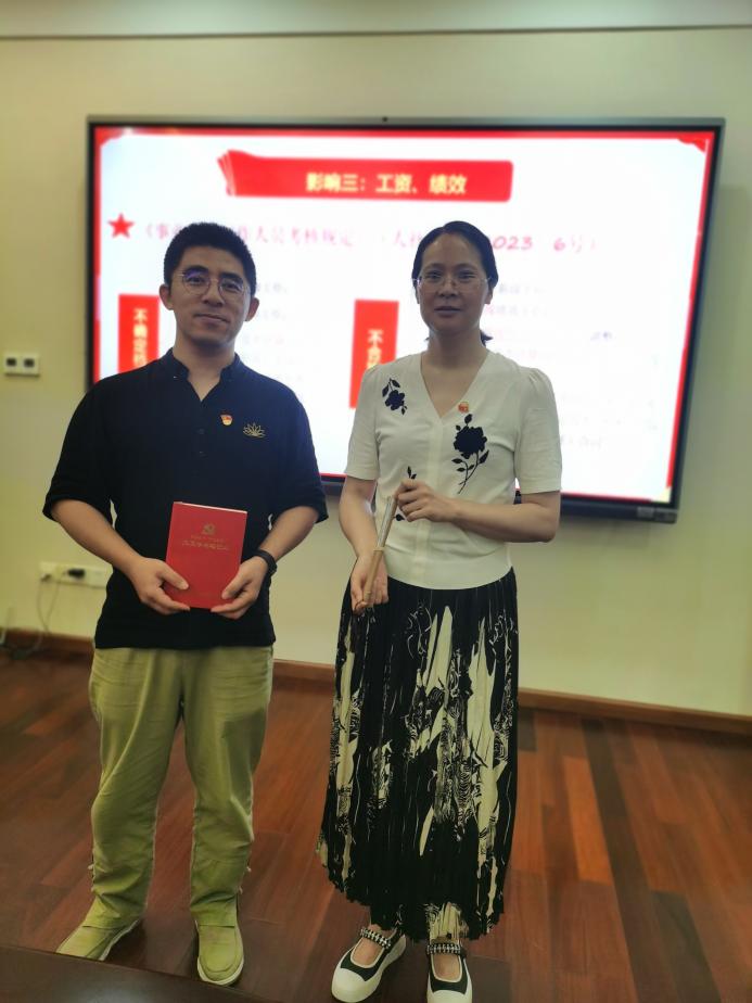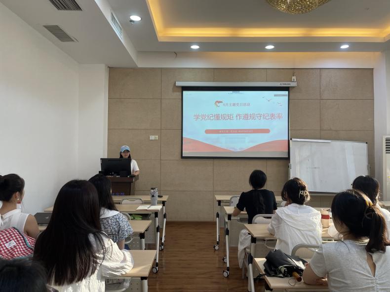 6月14日上午9:00,行政教工党支部在304会议室举行“学党纪树新风 作师德师风表率”主题党日活动,活动由第一学习小组牵头组织。